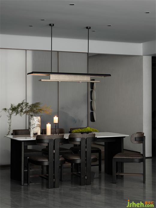 大氣的吊燈如云帆懸于桌椅之上,