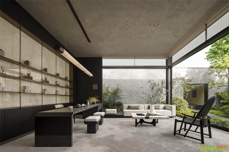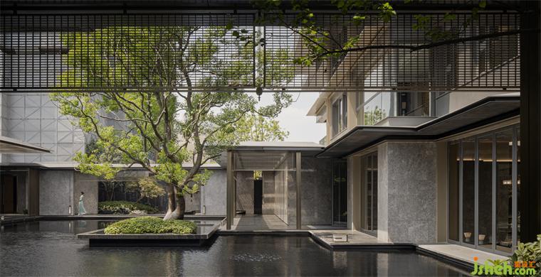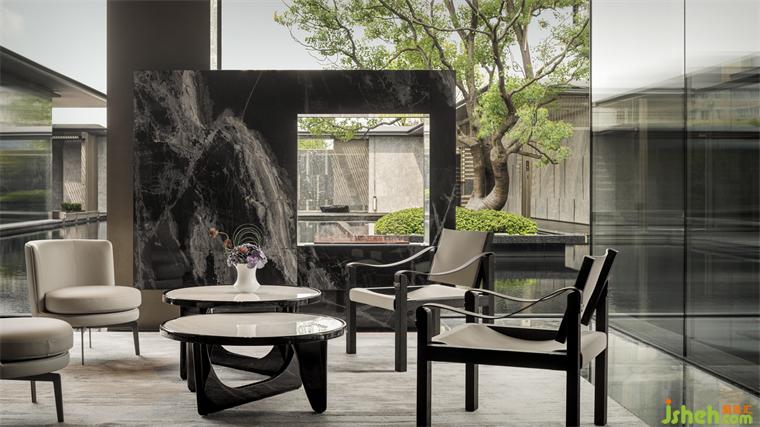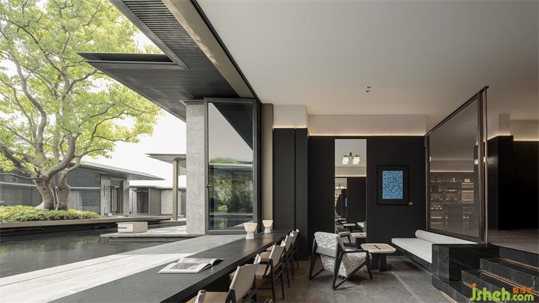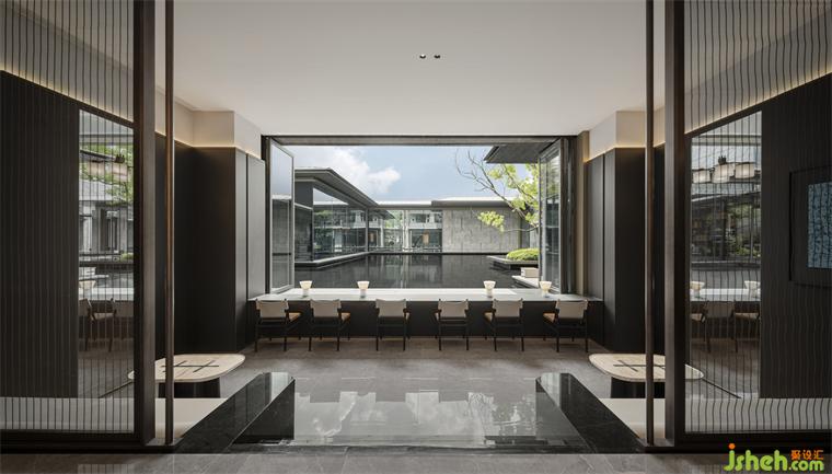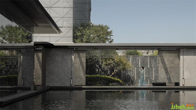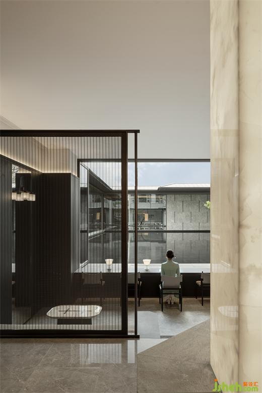 各空間與中央的景觀水院通過長廊銜接,隱現(xiàn)區(qū)隔,阡陌通達,會所設(shè)計同享一片水院,又相互獨立,享有截然不同的景致體驗,游園氛圍便這樣慢慢滌蕩開來。