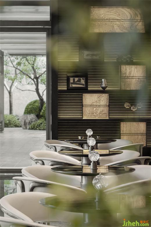 空間設(shè)計化韻于境,布局陳列典雅有序,蘇式風雅化形成真。將框景、借景等造園手法運用到空間布局中,經(jīng)藝術(shù)剪裁,速成詩意。足不出戶,亦能透過花窗、樹影將室外景致引入室內(nèi)。雅聚于此,會所設(shè)計仿佛“姑蘇繁華圖”徐徐展開,視線所至盡顯雋美精微。