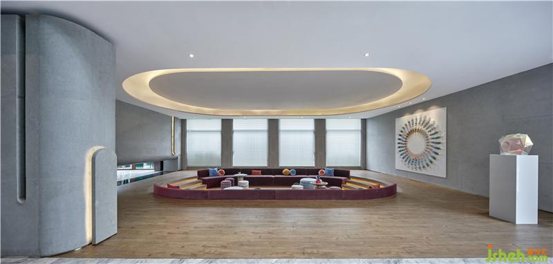 深度洽談區(qū)通過下沉式弧形區(qū)域分隔設(shè)計,打造圍合與開放、私密與共享并存的平衡。墻面上的藝術(shù)畫”夢境彩虹“像是神秘的圖形符號,沖擊著視覺感官,深邃的引人一探究竟。突然一只兔子跳出來,來到愛麗絲的仙境!