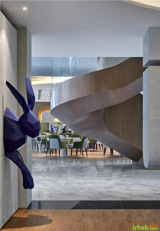 兔子先生帶我們穿過一面玻璃鏡,鏡中你看到了自己卻又不是真實的自己,鏡中有田野和森林。漫步在洽談區(qū),活力的木色,清新的綠色,空間仿佛一個柔軟的夢境,朦朧光影下成生機勃勃的森森綠林。它如同一個埋在心里的秘密,不可言說,神秘而又微妙,靜靜地等待你去開啟。
