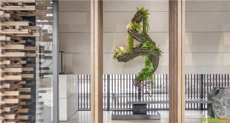 大廳墻上藝術(shù)裝置“菩提”,意為覺悟、智能、知識(shí)、道路之意,有斷絕煩惱而成就涅盤智慧象征。菩提子為最常見的佛緣之物,在此也見證著室內(nèi)的平靜與美好。