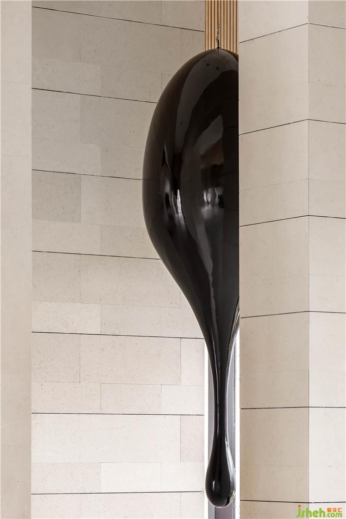 黑色的巨大藝術(shù)雕塑,肅穆而莊嚴(yán),仿佛洞悉著世間萬(wàn)物輪回的艱辛與沉苦。一墻的半透光景,再點(diǎn)亮萬(wàn)壑燭光,讓氣闊的空間,多了更多的人生故事與縹緲的視覺(jué)氛圍。