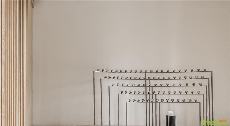 洽談區(qū)天花板木欄柵設(shè)計,以視覺界定空間焦點,隔柵直線無形延伸了空間寬度,也延伸出空間的優(yōu)越。洽談椅有巧妙的圓弧扶手,恰與墻面抽象畫成圓弧協(xié)調(diào)姿態(tài),象征微笑擁抱以及佛家笑對人生,知足常樂的人生態(tài)度。