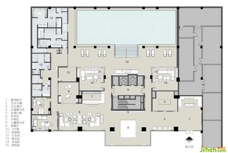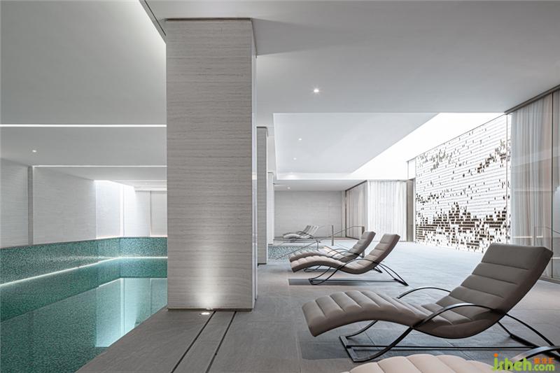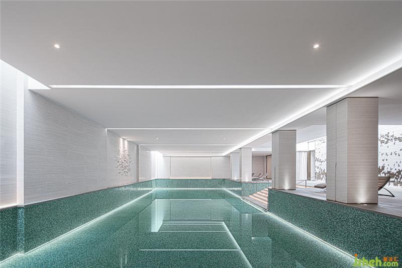 泳池區(qū)與vip室之間的玻璃隔斷不僅契合了空間寶盒的主題,同時(shí)讓VIP室與外界相連 ,與泳池產(chǎn)生了互動(dòng),悠悠水波與光影增強(qiáng)了空間深邃氛圍,營(yíng)造一種尊貴不凡的藝術(shù)體驗(yàn)。