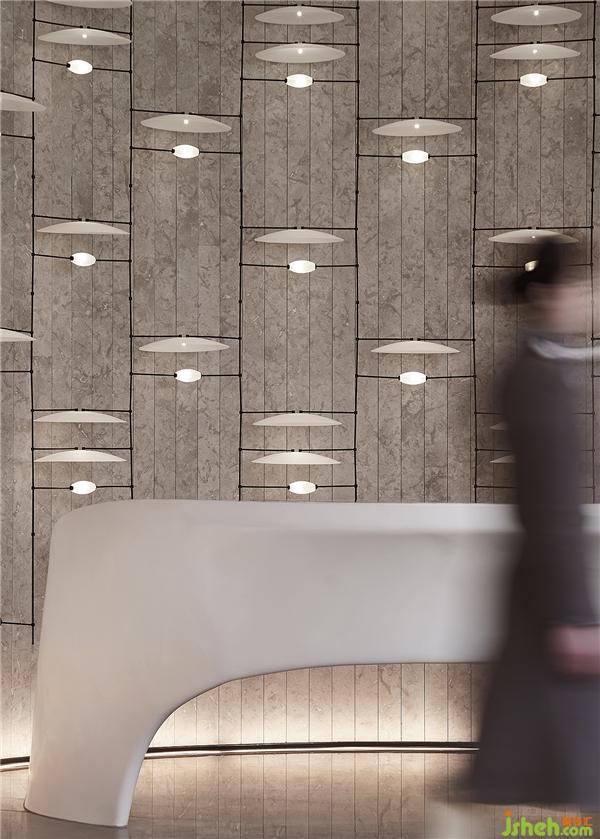 走過藝術(shù)廳,穿過前廳接待臺(tái),是一個(gè)從贊嘆驚艷的視覺享受,逐步沉淀到心靈層面的歷程。前廳接待臺(tái)以棋盤排列式燈光配置,溫暖打造有如梵高星夜般靜謐優(yōu)美的角落,讓匆忙思緒逐漸沉淀,回歸心靈的沉靜步調(diào)。
