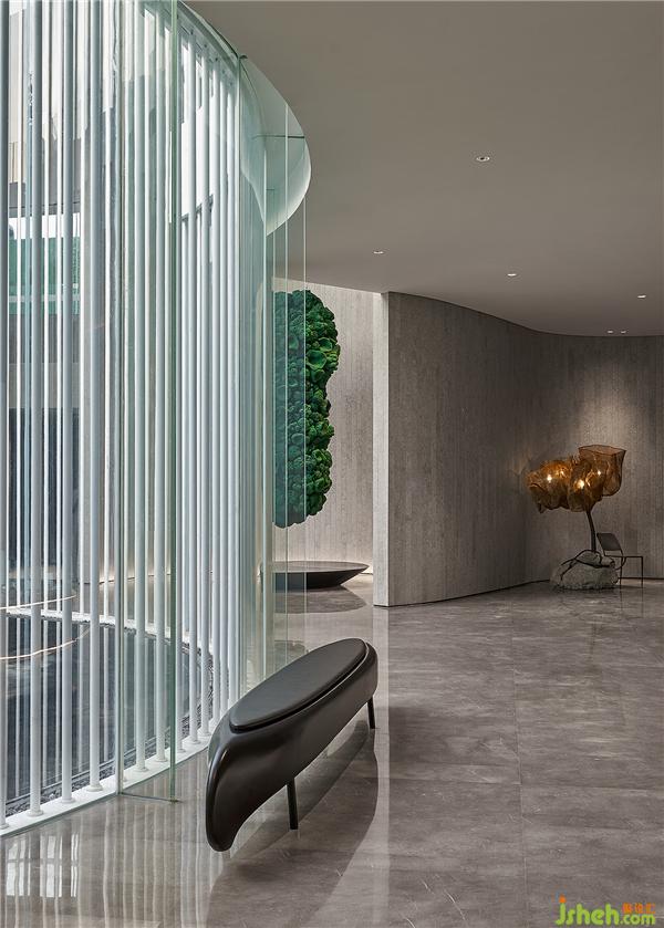 陽光雨露滋養(yǎng)萬物生長(zhǎng),“穴棲群落”于此獲得能量,設(shè)計(jì)師嘗試以一枚苔蘚或一只昆蟲的姿態(tài)體會(huì)宇宙自然,在溫暖與克制之間游刃有余。大片的落地玻璃,變成一種空間的美學(xué)形式,室內(nèi)與室外的空間沒有絕對(duì)的隔斷,陽光灑在室內(nèi),又看得見風(fēng)景,一種通透的感覺。人與自然可以有“隔”,可是這個(gè)“隔”又是可以連接的。