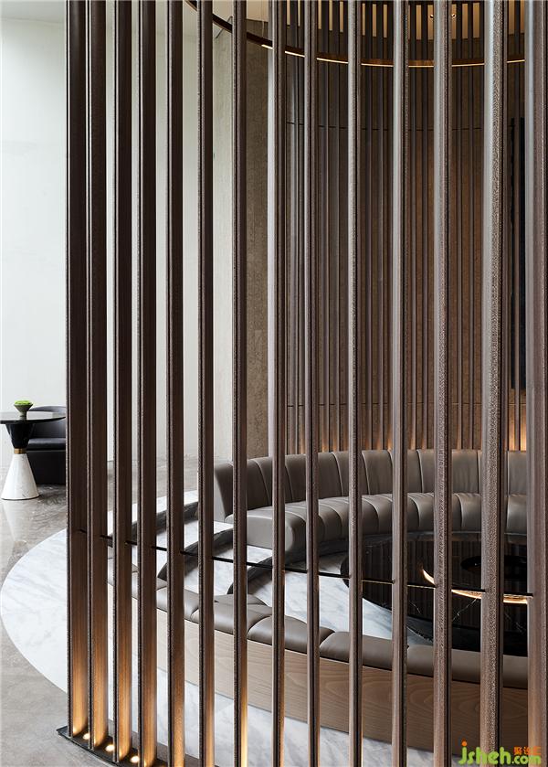 VIP洽談區(qū)使用木柵編構(gòu),為VIP賓客擘劃出專屬動線,在私密感與開放性之間取得巧妙平衡,同時開放式柵欄讓光線得以深入各角落,達到整室的流通與情感的交流。