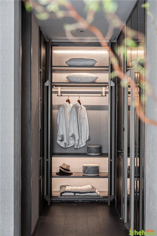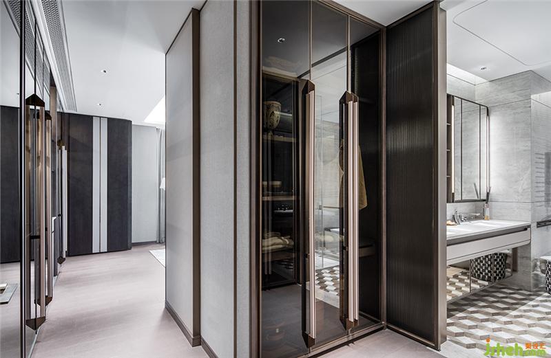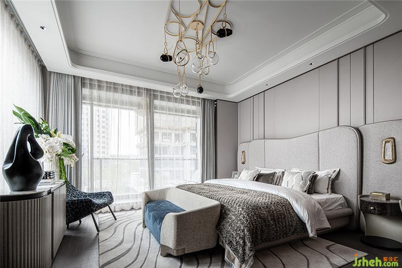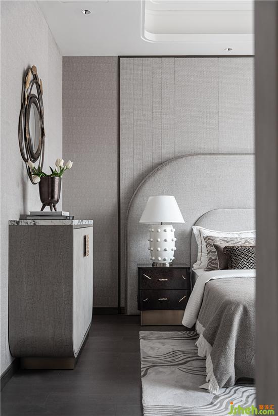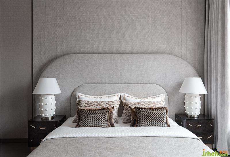 主臥在光線的設(shè)計(jì)師極其講究,注重營造視覺層次感。極具造型感的主燈,創(chuàng)造出劇場式光影,更加深了視覺張力。布面床頭背景使用布料材質(zhì),切割出有質(zhì)感的設(shè)計(jì)線條,纖維觸感同時呈現(xiàn)紓壓的寢居氛圍,營造一個真正能夠安適休息的私密空間。樣板房設(shè)計(jì)