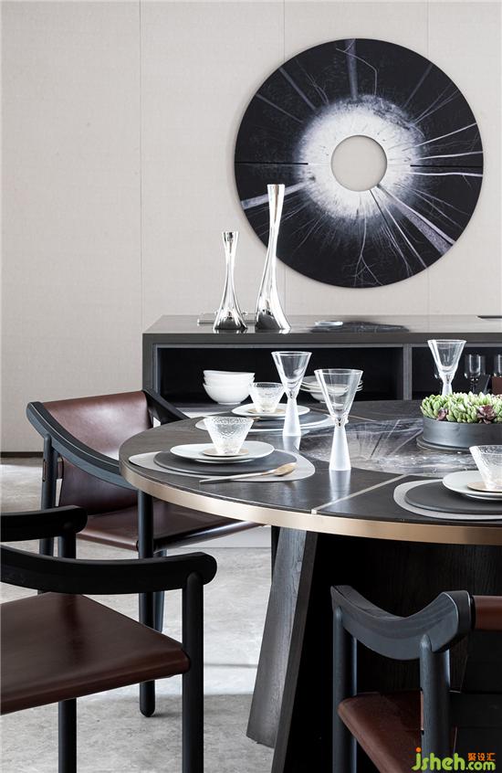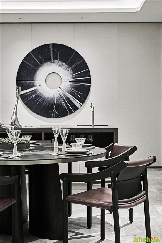 對(duì)許多人來(lái)說(shuō),料理美食是他們生活中相當(dāng)重要的一部分。對(duì)于老上海而言,飯桌與牌桌上更是家族交流與社交的重要舞臺(tái)。傳統(tǒng)海派的木質(zhì)圓桌做為中心點(diǎn),極具禮儀感,座椅與燈具在視覺(jué)上呈現(xiàn)一個(gè)圓融的弧度。加上現(xiàn)代藝術(shù)精品做點(diǎn)綴,中西結(jié)合的沖突之美也就成為最令人醉心的魅力所在。