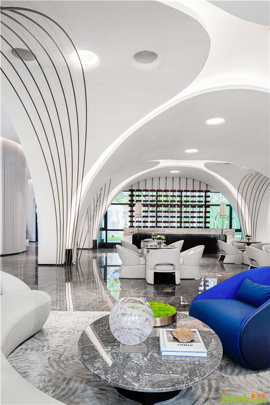 地面、墻壁和屋頂都呈優(yōu)美曲線的空間,形似花開的穹頂,是設(shè)計(jì)中的最大亮點(diǎn)。作為一個(gè)沒有縫隙的整體,這種效果充滿魔力,十分標(biāo)新立異。WJID 消解了建筑中的定律,創(chuàng)造了一套屬于自己的規(guī)則。裝修公司