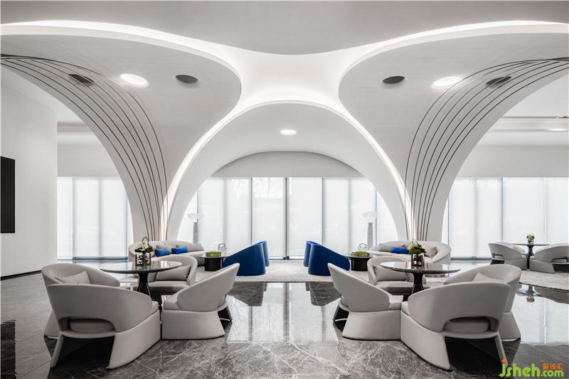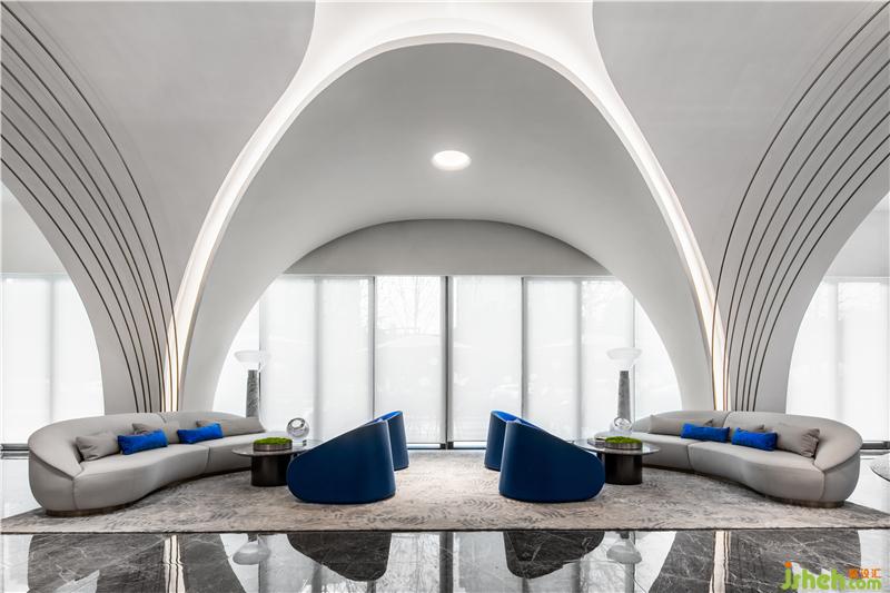 實際上,空間中白色曲線構(gòu)成,是由鋼架搭建成的。這使該建筑既具備了一定的硬度,又能夠在空間上看上去有自由流動的效果。裝修公司