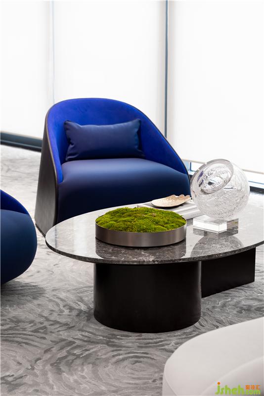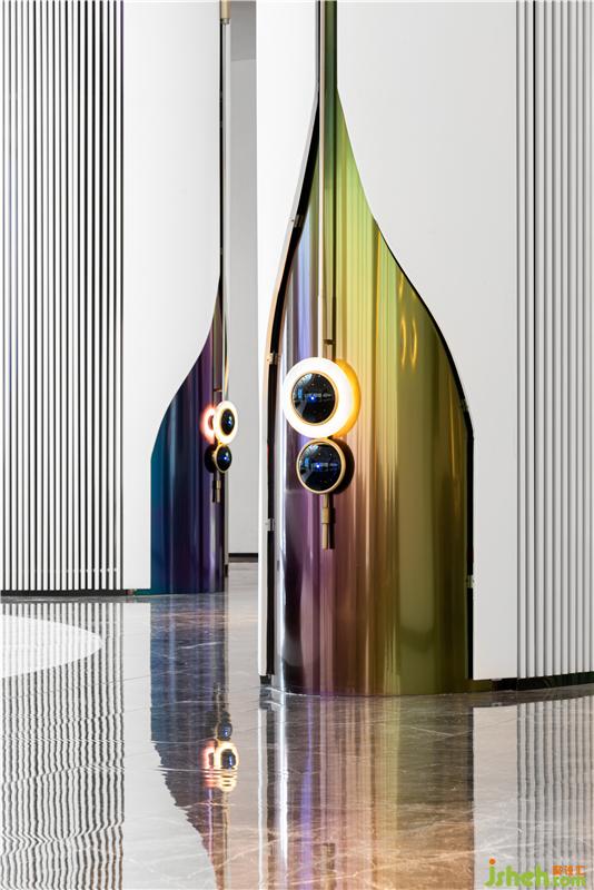 轉(zhuǎn)角處的圓柱,以典雅紫色與人們相遇。如陽光下孔雀的尾羽,光線交映下散發(fā)出迷人光澤,又倒影在大理石地面上,獨有一番風(fēng)景。裝修公司