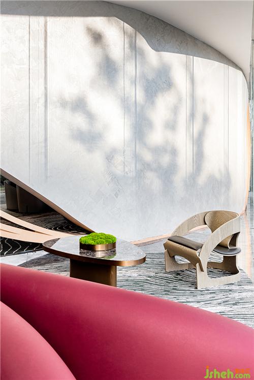 深洽區(qū)的家具設(shè)計(jì)著重體現(xiàn)生命的愉悅與歡欣,線條圓潤(rùn),色彩柔美,配以植物裝點(diǎn),整體如一首有形的抒情詩(shī)。好的空間,是要既有藝術(shù)的格局,亦不減生活的氣息。