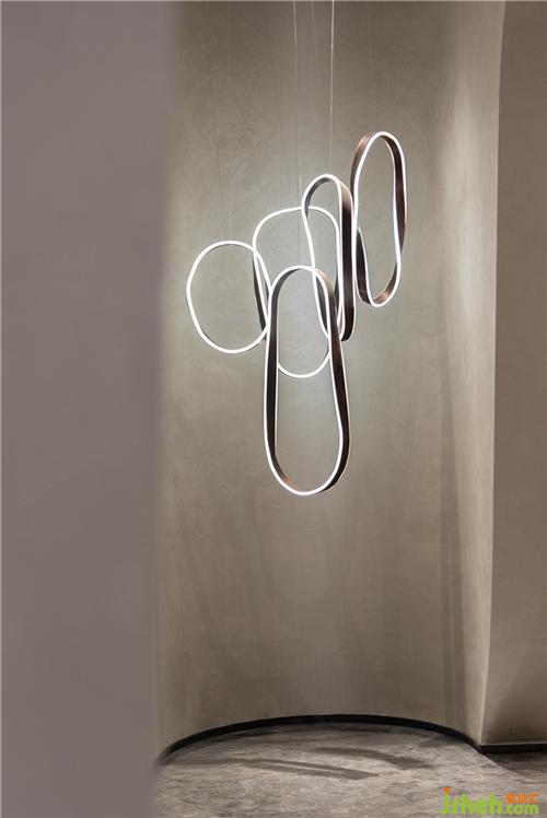 WJID提取硬裝空間的形態(tài)元素,在藝術(shù)長(zhǎng)廊盡頭形成垂掛式的藝術(shù)裝置,迎著光與花蜿蜒在墻面,如同城市線條的縮影。