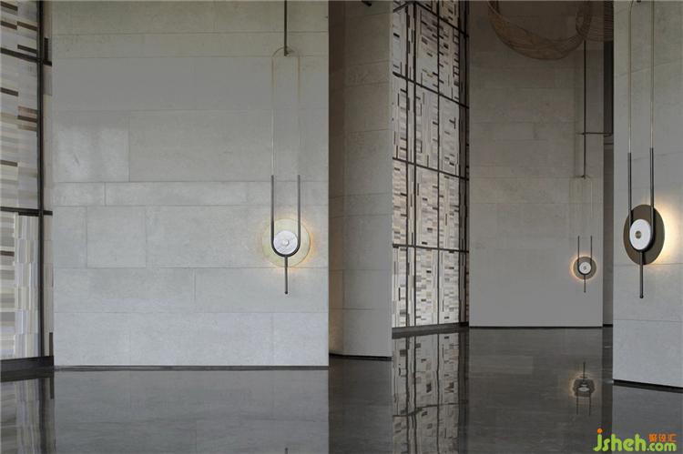 望蒼穹而不見明月,原是墜入了無邊夢境。壁燈由羅盤形態(tài)與幾何線條穿插組成,柔和的光在周圍彌漫開來,如圓月在水面投射的倒影,暈出波紋般的流光。