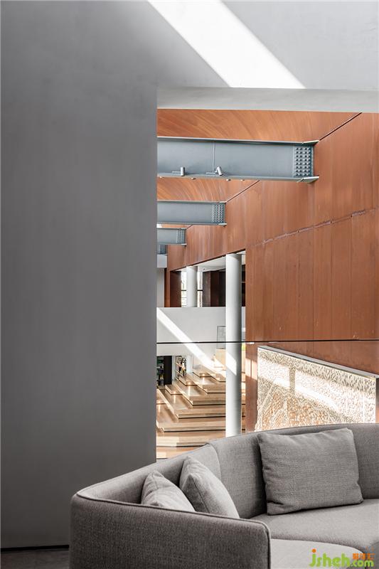 幸福集薈書店的裝修設計,使這里成為一個集合讀書、文創(chuàng)、咖啡、洽談等功能的多元體驗空間。模塊的碰撞融合,使空間的豐富性與寬闊感得以延續(xù)。