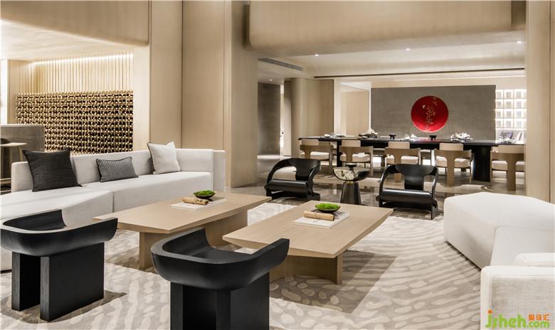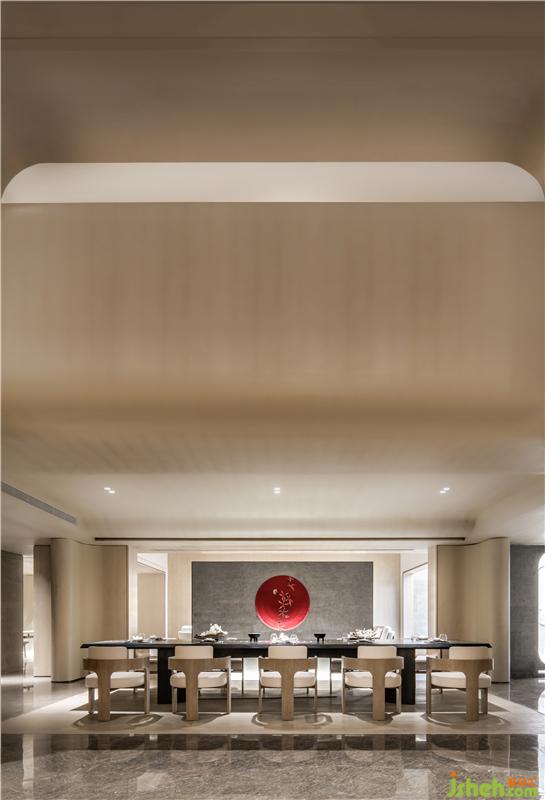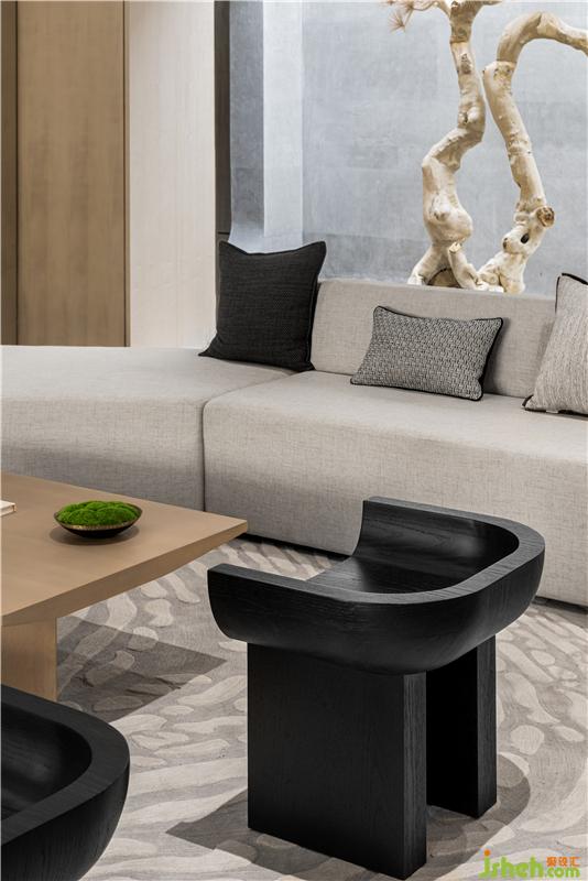 卷軸的形態(tài)同樣延伸到家具設(shè)計(jì)中,嚴(yán)謹(jǐn)?shù)募?xì)節(jié)致敬那個(gè)極致審美的時(shí)代,一曲一折都帶著宋的格調(diào)。