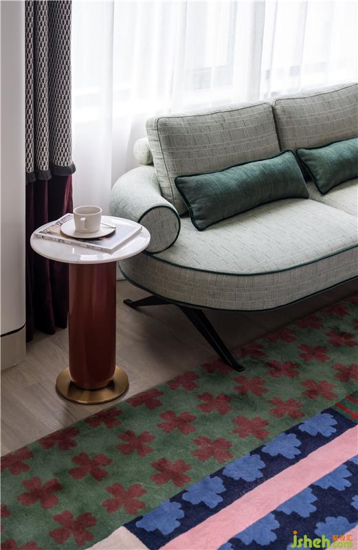 內飾的每一處細節(jié)都經過精心設計,將多種材質、尺寸和維度巧妙連接起來,在切割和拼貼的花紋中實現(xiàn)空間中的演進和趣味。溫暖的居家氛圍與奢侈華美的色調共存,這種沖突感正是Art Deco的魅力之源。