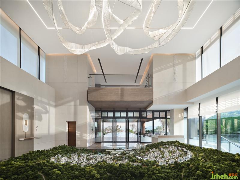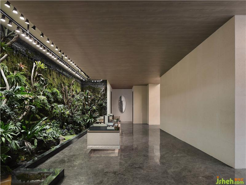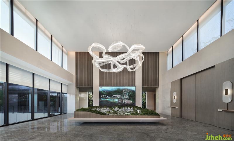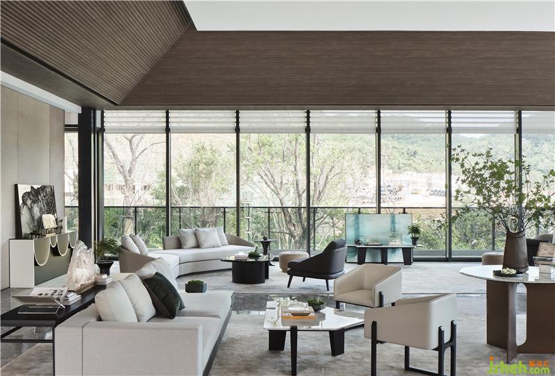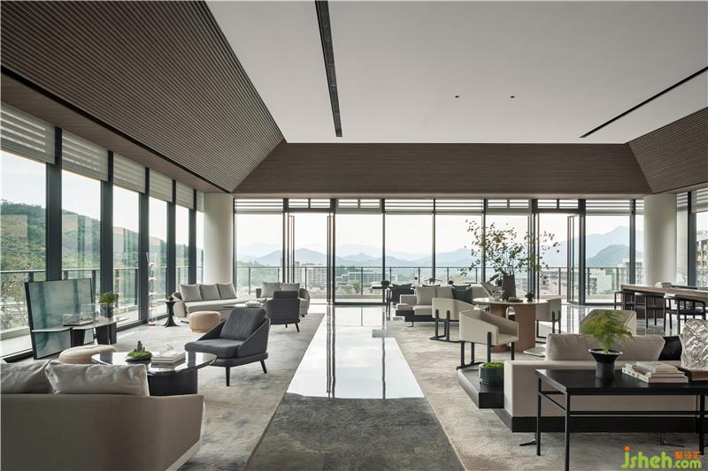 吊頂木質(zhì)元素的引用古樸、自然、溫和,上海售樓處設(shè)計(jì)大面積的落地窗隱藏內(nèi)外界限,石材質(zhì)走道與坐賓區(qū)沙發(fā)椅錯(cuò)落擺放,厚重而誠摯,使到訪者賓至如歸。