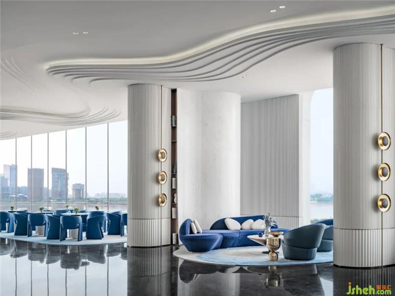 VIP空間旨在營造一個意趣非凡的商務(wù)洽談區(qū)域。設(shè)計師在藍(lán)白調(diào)的浪漫呈現(xiàn)上,萃取咖色融入商務(wù)質(zhì)感,在細(xì)微處彰顯生動、高級。