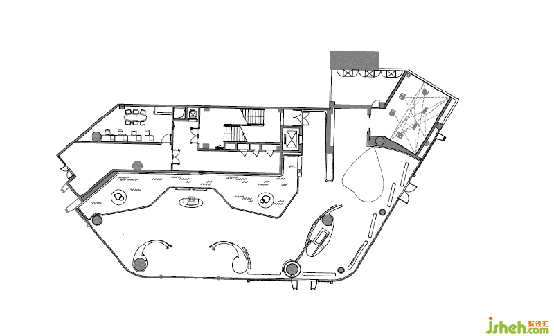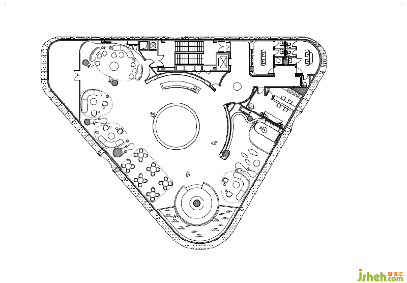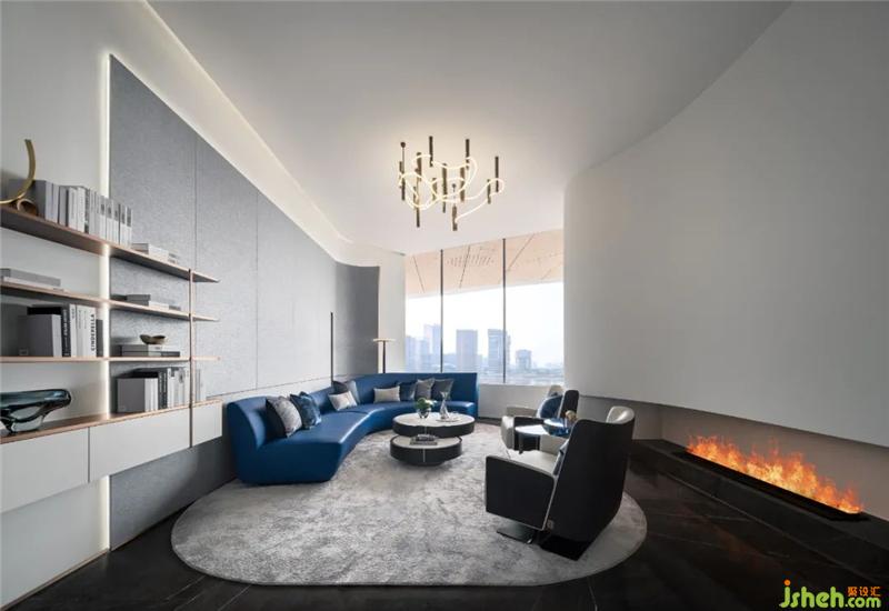結(jié)構(gòu)與取景是這一區(qū)域重點強(qiáng)調(diào)的元素。盡管曲線的表達(dá)難于言說與琢磨,但局部的定調(diào)與框架又能形成視覺統(tǒng)一。藝術(shù)性的純藍(lán)再度出現(xiàn),在流線型的表達(dá)中,不同角度的取景帶來多形態(tài)的豐富之景。