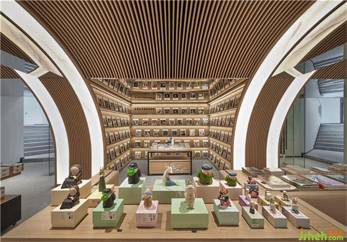 原木材質(zhì)包裹于墻面,形成一種大量的留白,將空間讓步于讀物本身,體現(xiàn)出不喧賓奪主的謙遜。