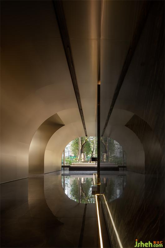 金屬色澤照著燈光的繾綣,與大理石地面倒映出似湖泊面的平靜,一種彼此關(guān)照與對(duì)稱的美。將人流與脈絡(luò)無(wú)限激活,打造極具在地文化感與國(guó)際視野的內(nèi)容設(shè)計(jì)。