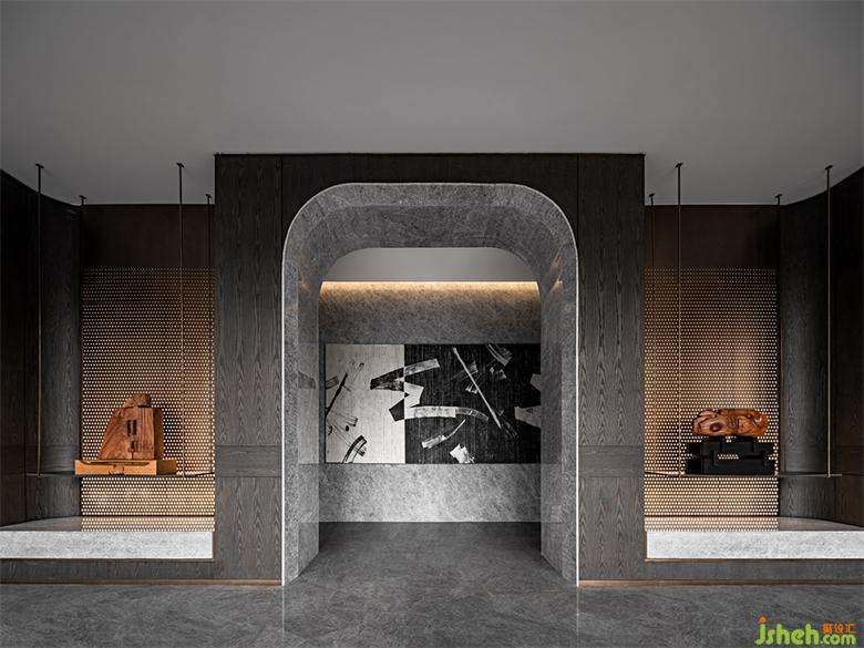 拱門兩側(cè)的木作裝置渾厚且精巧,猶如金石篆刻,一股清澈、挺拔的生機,貫穿結(jié)構(gòu)與線條中。