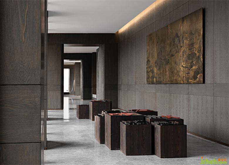 維幾設(shè)計運用層疊的木作線條和大理石壺墻,將建筑語匯與其功能性交互圓融,凝練理性秩序的端莊雅正。