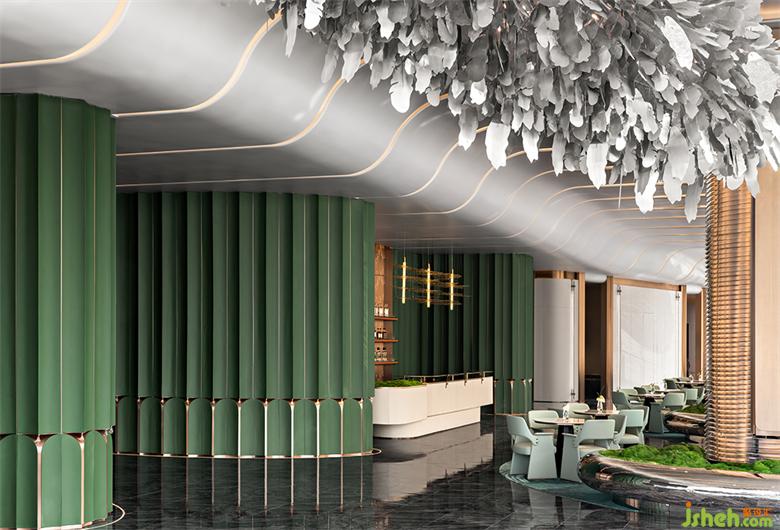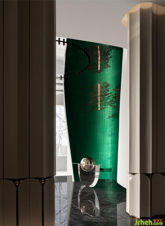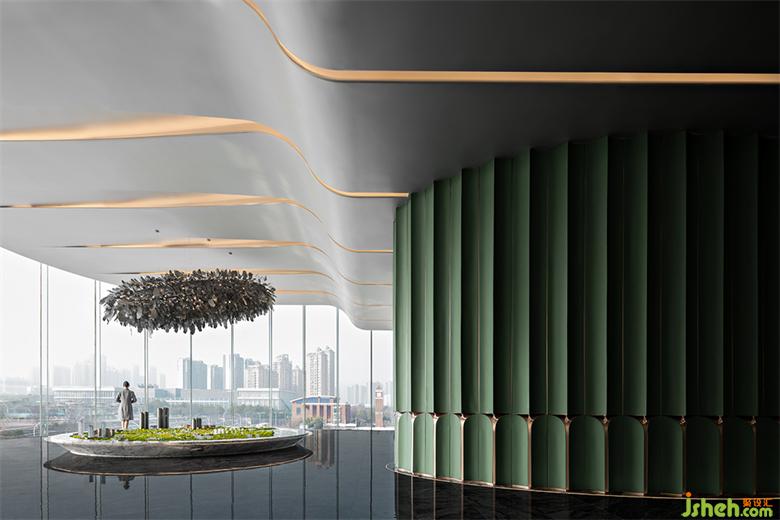 鏡面將日光反射,折射出無數(shù)的棱鏡形式,武漢售樓處設計在一片又一片綠色光磚上映出郁郁蔥蔥的森林。
