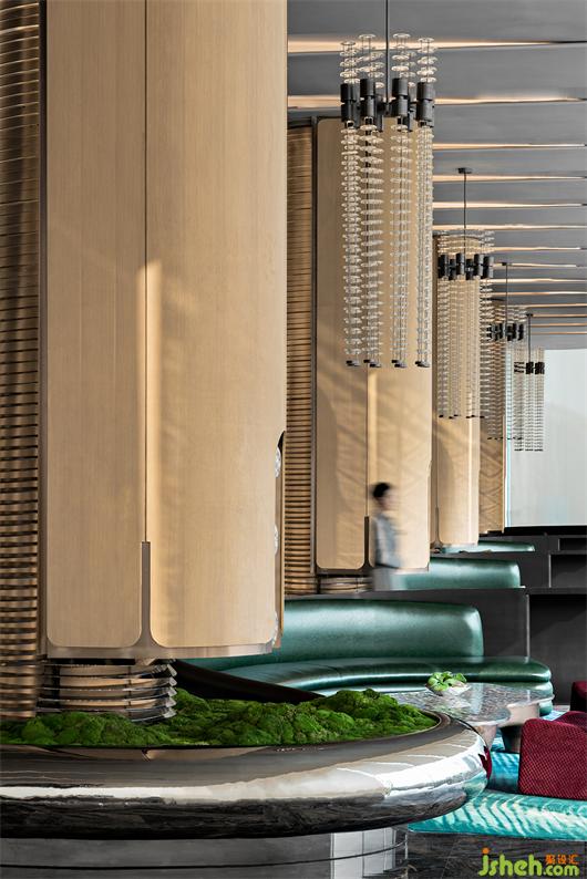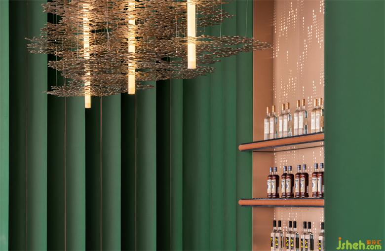 洽談區(qū)吊燈擬態(tài)雨滴穿過樹林灑落到地上,由此便可開啟大自然的篇章……
