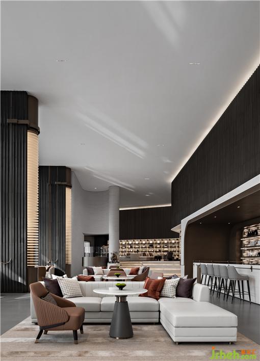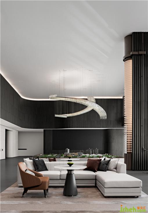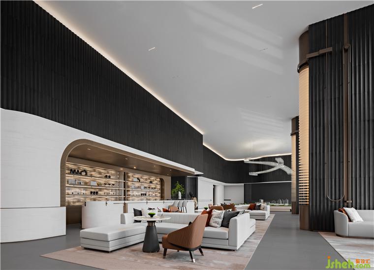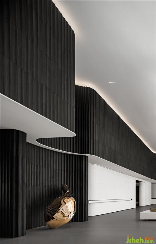 流動延綿的線條仿若潮汐,白色的海浪席卷在墨色的云層中,營銷中心設(shè)計既有靜穆的自由向往,又仿佛能將人代入白日幻境。