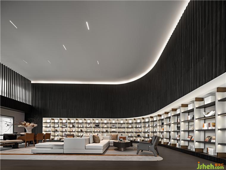 休息大廳沿襲洽談區(qū)頂?shù)貕y(tǒng)一造型,營(yíng)銷中心設(shè)計(jì)半圍合結(jié)構(gòu)界定了區(qū)域功能的屬性,光的走向傳遞空間的質(zhì)感與紋理。