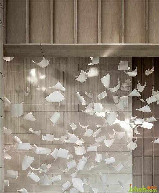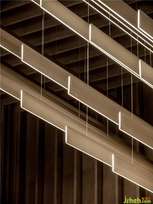 銷售中心設計裝置如書卷紛紛,亦如時光剝落,于木色交錯相映,婆娑之間,藝術細節(jié)與書閣氣質初現。
