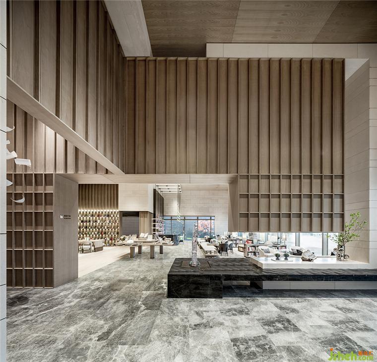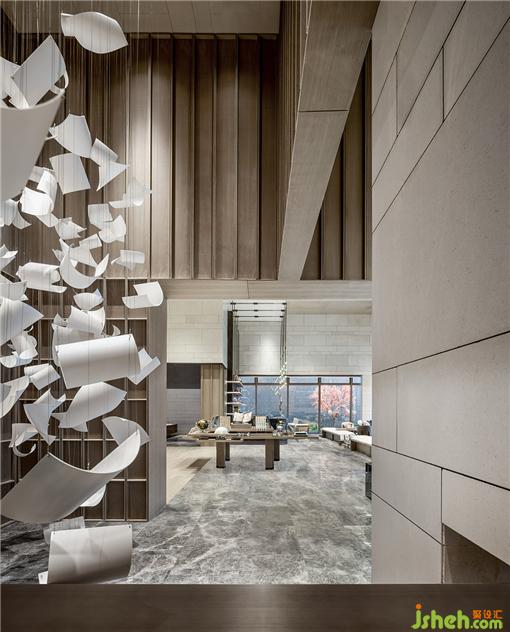 素凈淡雅的空間氛圍,銷售中心設計透過變化的視角呈現空間的結構,藝術以多元的形式深入其中。