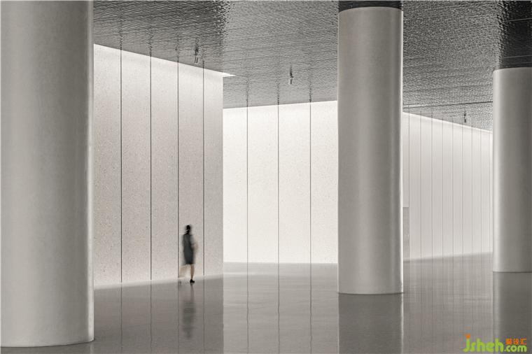 參觀者在體驗(yàn)不同展廳后可以重新回到公共環(huán)廊,迂回而有趣的路徑設(shè)置,靈活的分割和銜接的空間,公共藝術(shù)中心設(shè)計(jì)構(gòu)造出完整統(tǒng)一的空間序列,自然過渡到不同區(qū)域。