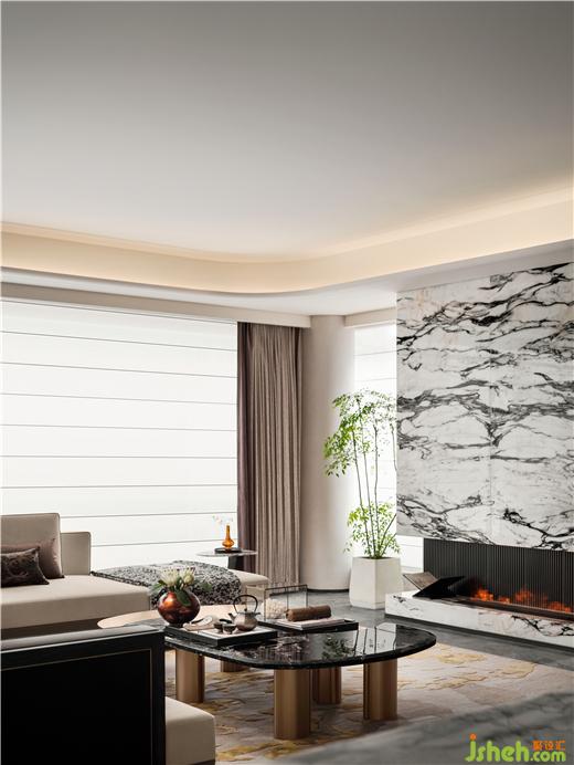 沿著木紋而生的大理石干泡臺蜿蜒出靈動的曲線,流觴曲水的風雅被迎進室內(nèi)。銀壺盛滿至潔的秉性,綠意輕展清麗的姿態(tài),明亮與淡雅,清涼與溫潤,動與靜融合,杭州縵云樣板房設(shè)計營造可觀賞,可把玩,可品嘗的互動空間。