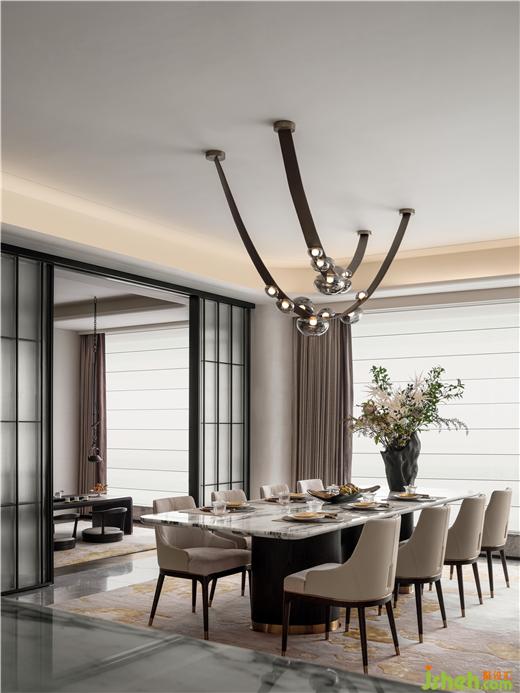 備餐臺(tái)置于客廳一側(cè),偶爾全家人圍聚在一起動(dòng)手準(zhǔn)備晚餐,或約閨蜜烘培下午茶,杭州縵云樣板房設(shè)計(jì)或小朋友們結(jié)伴做手工,津津不倦,主客盡歡。
