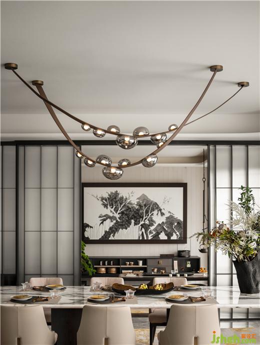 交疊的皮革被露珠依賴,花的香氣從巖石中散發(fā)。杭州縵云樣板房設(shè)計(jì)大面積底色歸納為筆墨,喚起本色,莊子逍遙一問,天之蒼蒼,其正色耶?天地自然濃縮成人生百味,散射的光輝包容了一切。