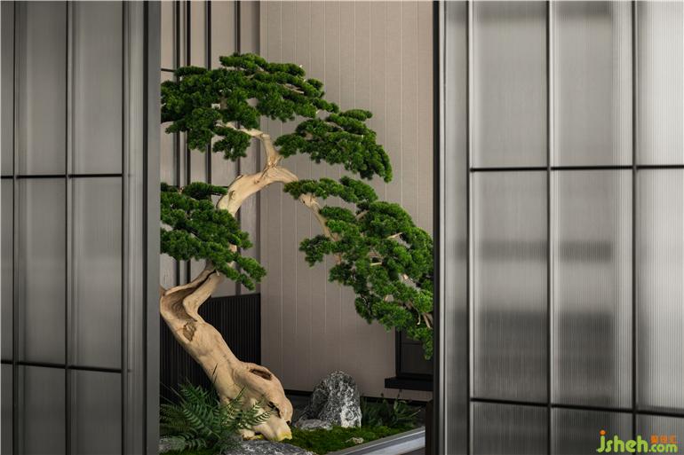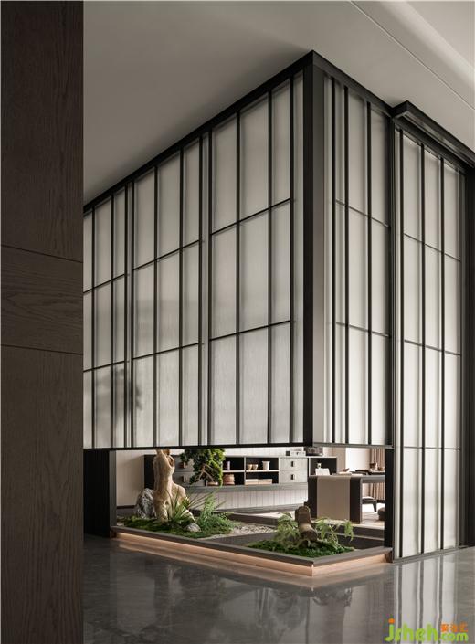 杭州縵云樣板房設(shè)計(jì)隔而不斷的半圍合,溝通茶室內(nèi)外,松竹之下,潺潺水聲,我是你的一方小景,你也不在我的心門之外。