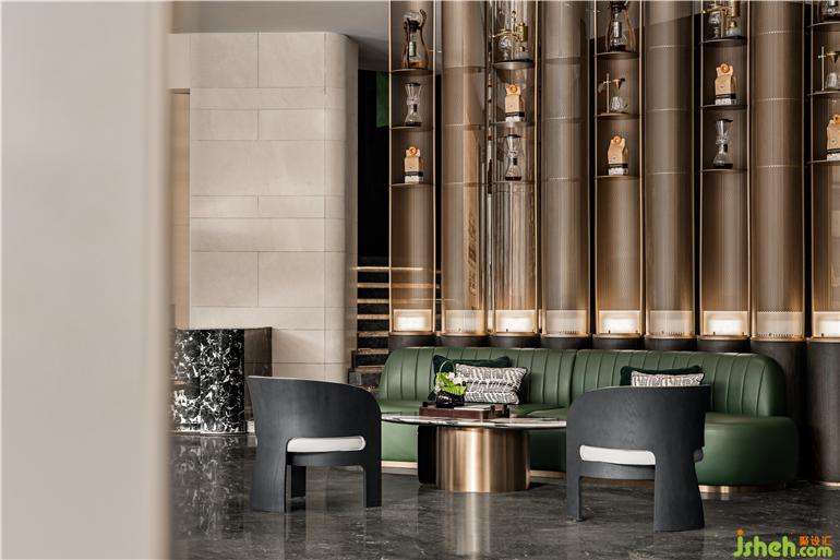 洽談區(qū)零星分散著小型桌椅與組合沙發(fā),布局、設(shè)計、材質(zhì)和家具相得益彰。
