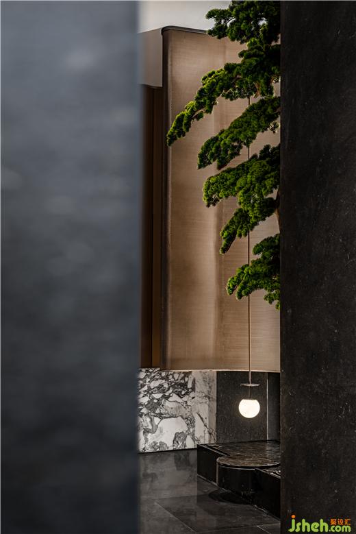 WJID取高奢酒店寶格麗為意象,成都龍湖瑰云里營銷中心設(shè)計將其大膽?yīng)毺兀鹳F而雅奢的文化精髓通過設(shè)計手法與空間融合,脫離傳統(tǒng)售樓空間的語境,打造一個生活藝術(shù)與度假氛圍交織的尊貴體驗空間。