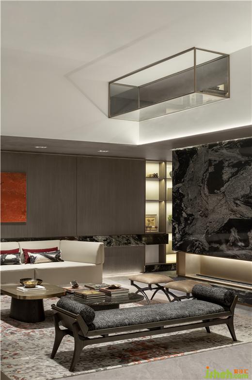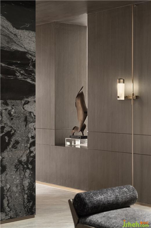 跳脫傳統(tǒng)的頂尖私宅作品,為極簡(jiǎn)大宅賦予溫潤(rùn)且自如的個(gè)性化特質(zhì)及精神表達(dá)。武漢綠城湖畔雲(yún)廬樣板房設(shè)計(jì)結(jié)合空間特質(zhì)打通了負(fù)一層與一層的側(cè)邊區(qū)域,將自然光線順利引入地下,擴(kuò)寬了自然延續(xù)生長(zhǎng)的空間,四季光景肆意流竄在整個(gè)家宅中。