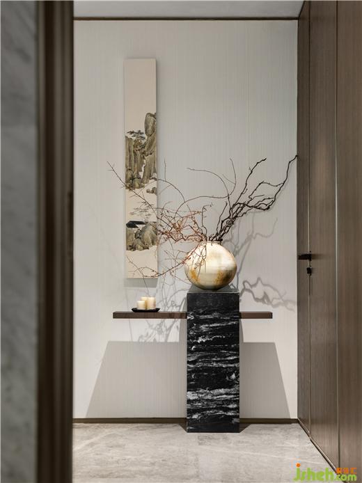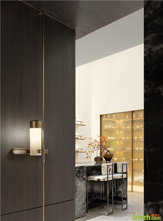 暖色溫潤的燈源是人體需要的視覺溫感,冷色的大理石桌吸引視覺落腳,心靈做到放松愜意,而身體又兼顧了清爽與通達(dá)感。