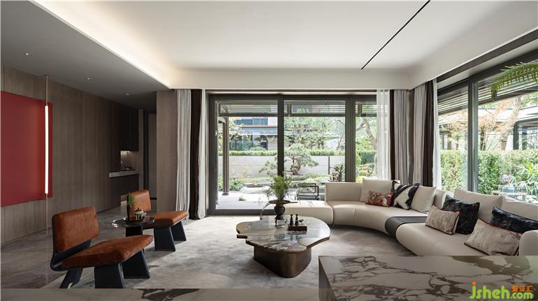 一層客廳被包圍在綠意滿滿的花園中,讓人無論身處何處都能隨時(shí)感受到自然的絢爛與生機(jī),居住其中,仿佛是愛麗絲掉入了兔子洞,駛?cè)肓藟?mèng)幻之境。