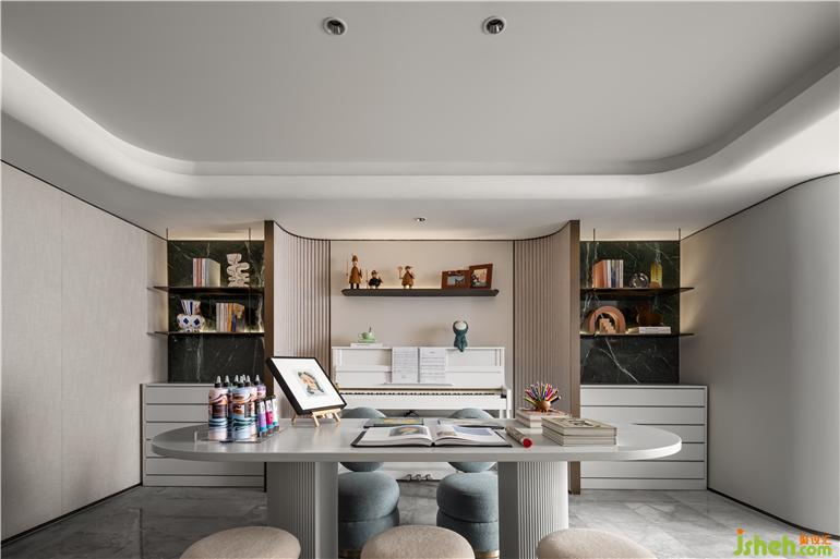 湖堤柔軟白沙的小丘,折合為沙發(fā)的形態(tài),夕陽如火的湖天一色折射成燃燃的壁爐,無錫融創(chuàng)CHINA山水江南樣板房設(shè)計(jì)無不充裕勾勒出對(duì)藝術(shù)生活的熱愛。