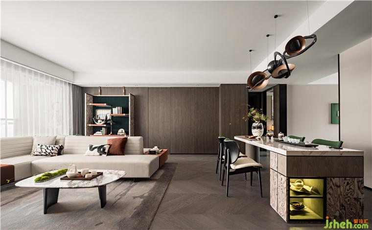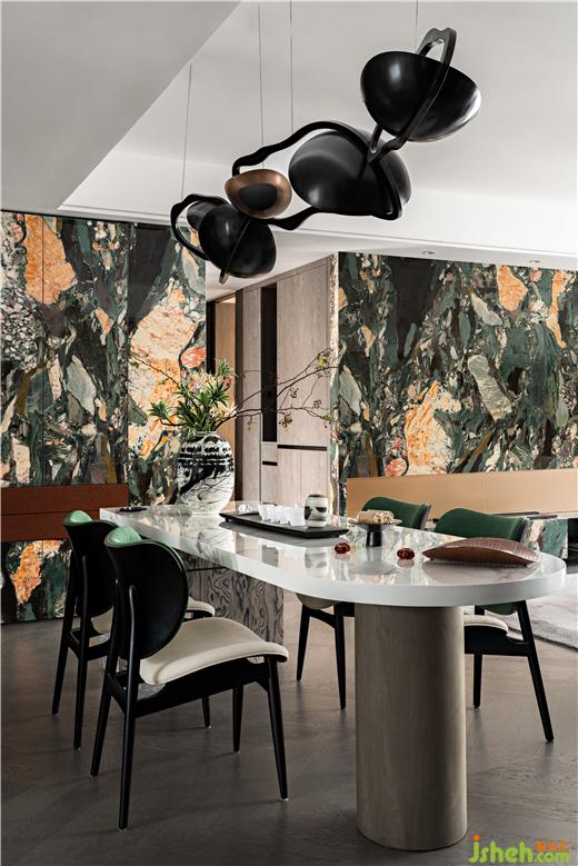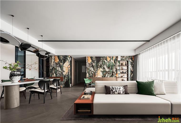 透過(guò)色彩的轉(zhuǎn)換定義空間不同主題的情緒表現(xiàn),原始森林般的大理石墻面帶來(lái)自然特色,開(kāi)放式的空間架構(gòu)透過(guò)型態(tài)的切割,無(wú)錫金地華著樣板房設(shè)計(jì)創(chuàng)造出不同框架式戶(hù)型上的空間效果。