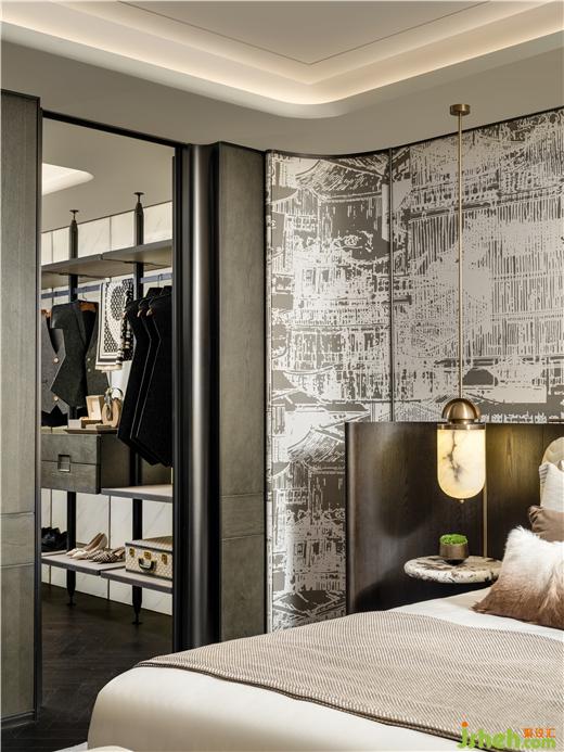 新月懸浮兩側(cè),搭配古典家具演變的條案,竹影策策的床頭背景墻四湖漾山水翠,又似庭院深深里,龍湖恒邦·花千樾別墅設(shè)計便是中式復(fù)古的設(shè)計也暗藏?zé)o限生動氣韻。