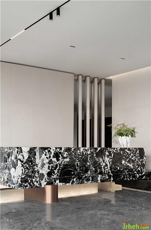 走過詩意叢生的“海上生明月”裝置,天然水墨畫一般的大理石前臺(tái)裝飾以低調(diào)光澤的金屬,預(yù)示著空間開篇的文化調(diào)性,昭示著此間境界的獨(dú)一無二。